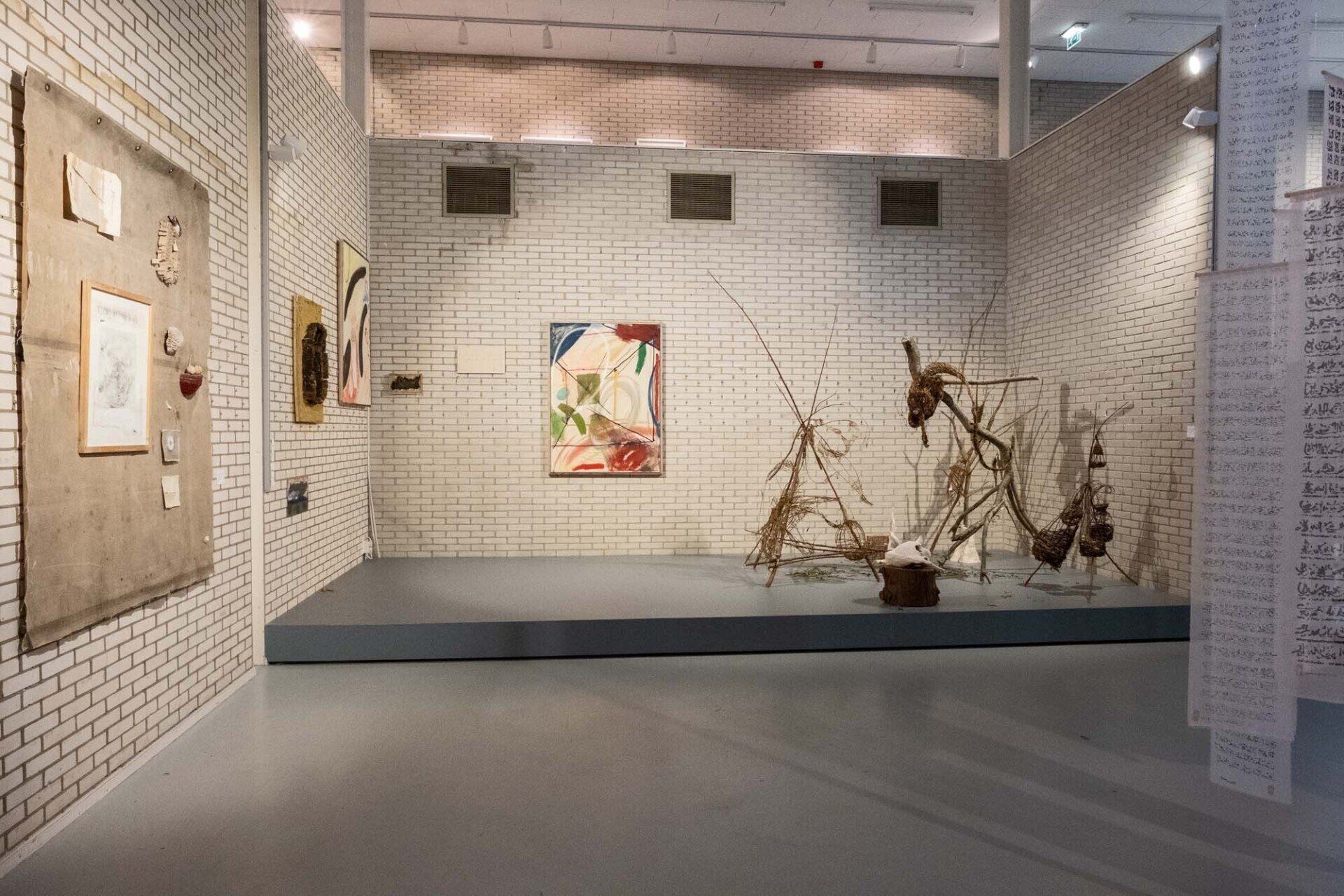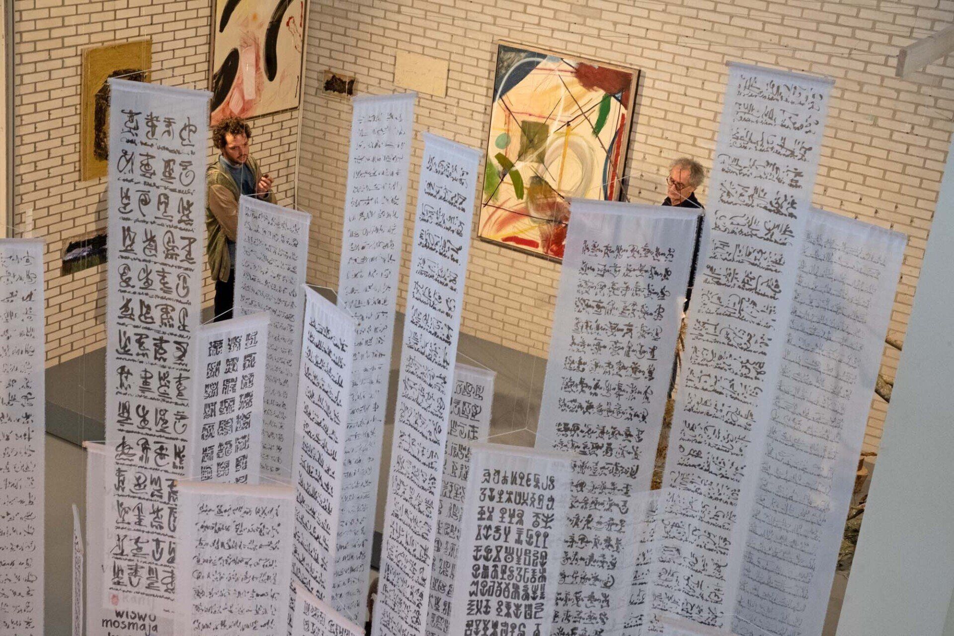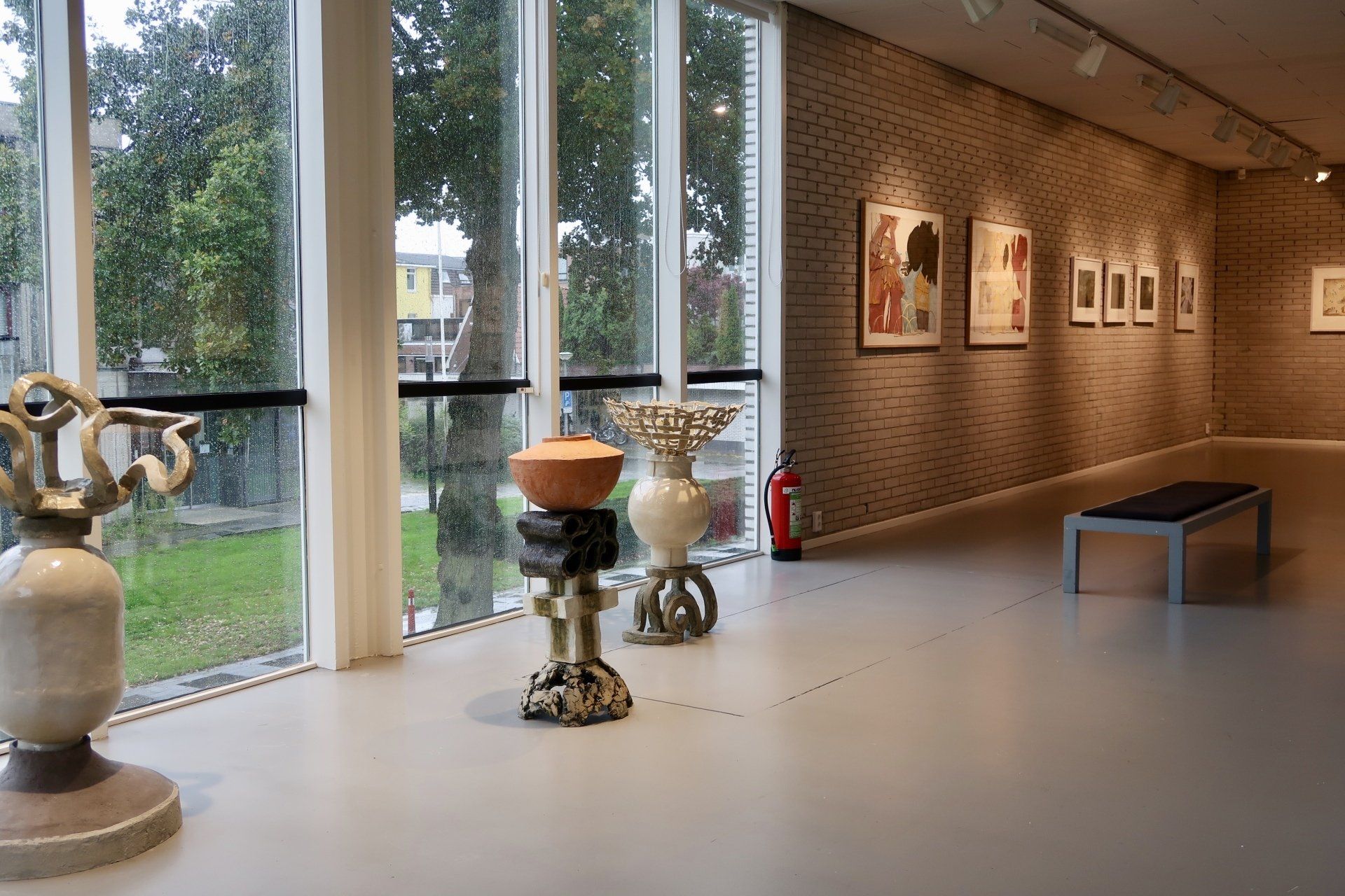 In het prachtige nog altijd authentieke Rietveldpaviljoen in Amersfoort hingen mijn twee schilderijen De engel en de ongenode gast (naar Lucebert)