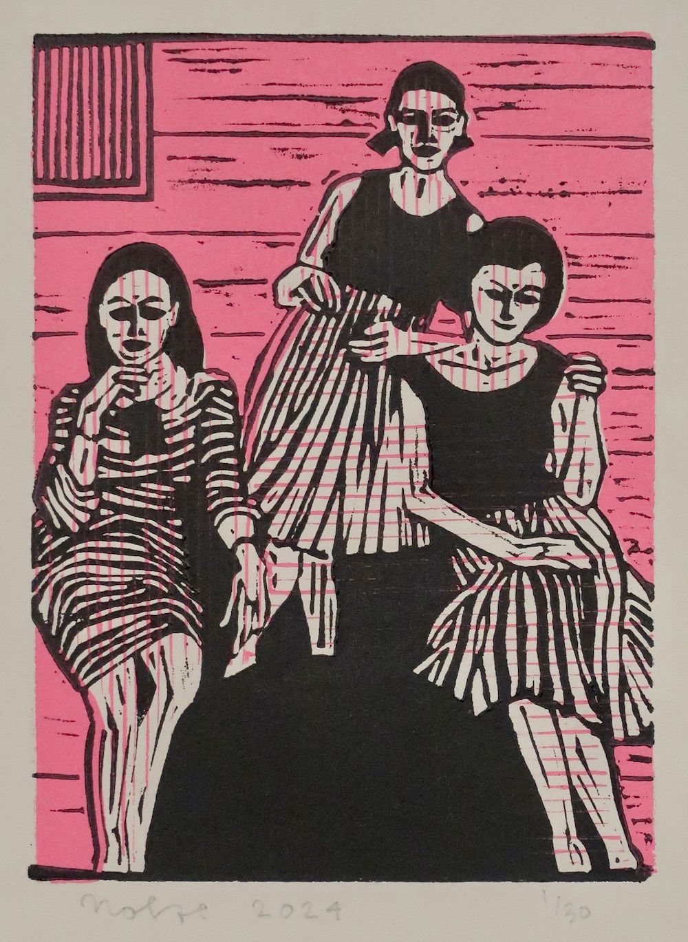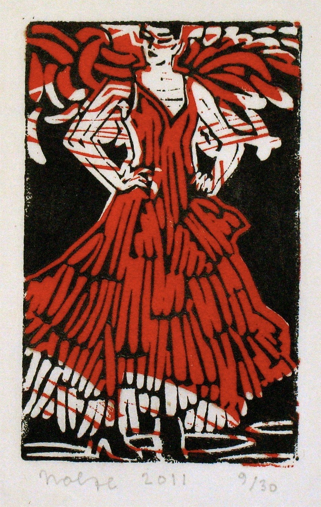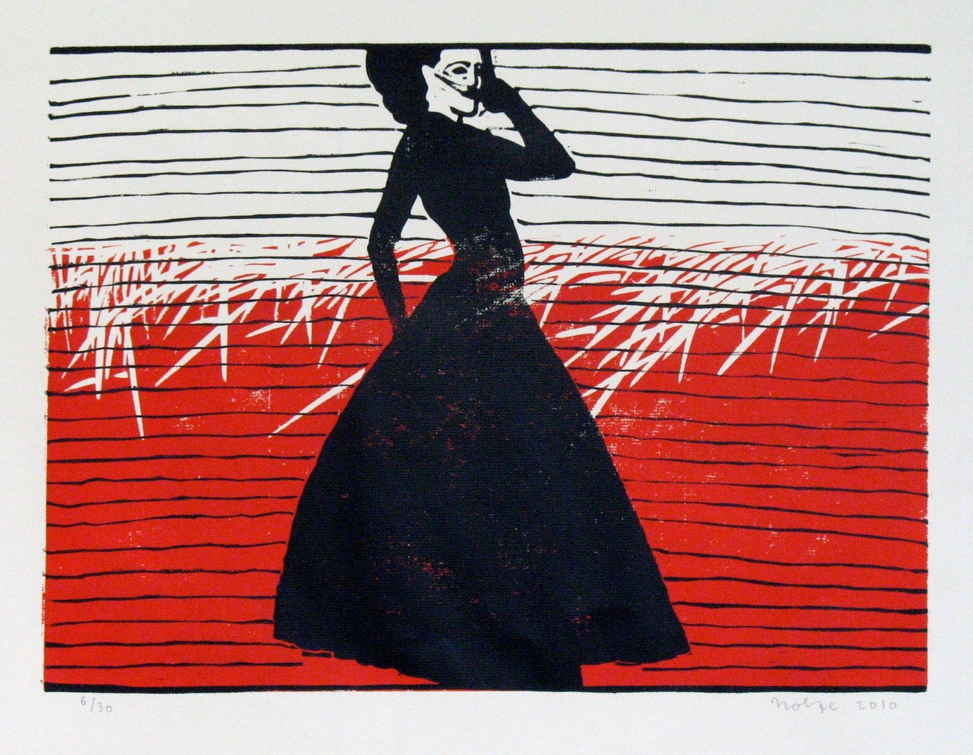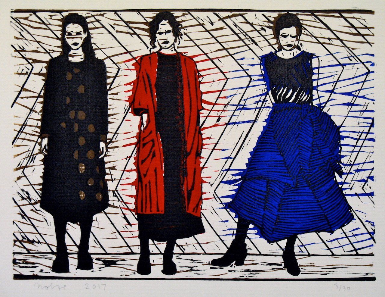 "Vooral de alsmaar toenemende betekenis van de vrouw in al haar verschijningsvormen in de kunst is voor Nolte een graadmeter van groeiende tolerantie. 'Andere mensen, andere gewoonten, andere kleur, andere gedachte. In mijn drie linosneden gaat het niet om de hoofdpersoon maar om de toeschouwers, om de mensen op straat. Niet een volk dat veroordeelt, maar de mens die daar tussen staat: de vrouw die ziet, luistert, ondergaat, beweegt, danst.'