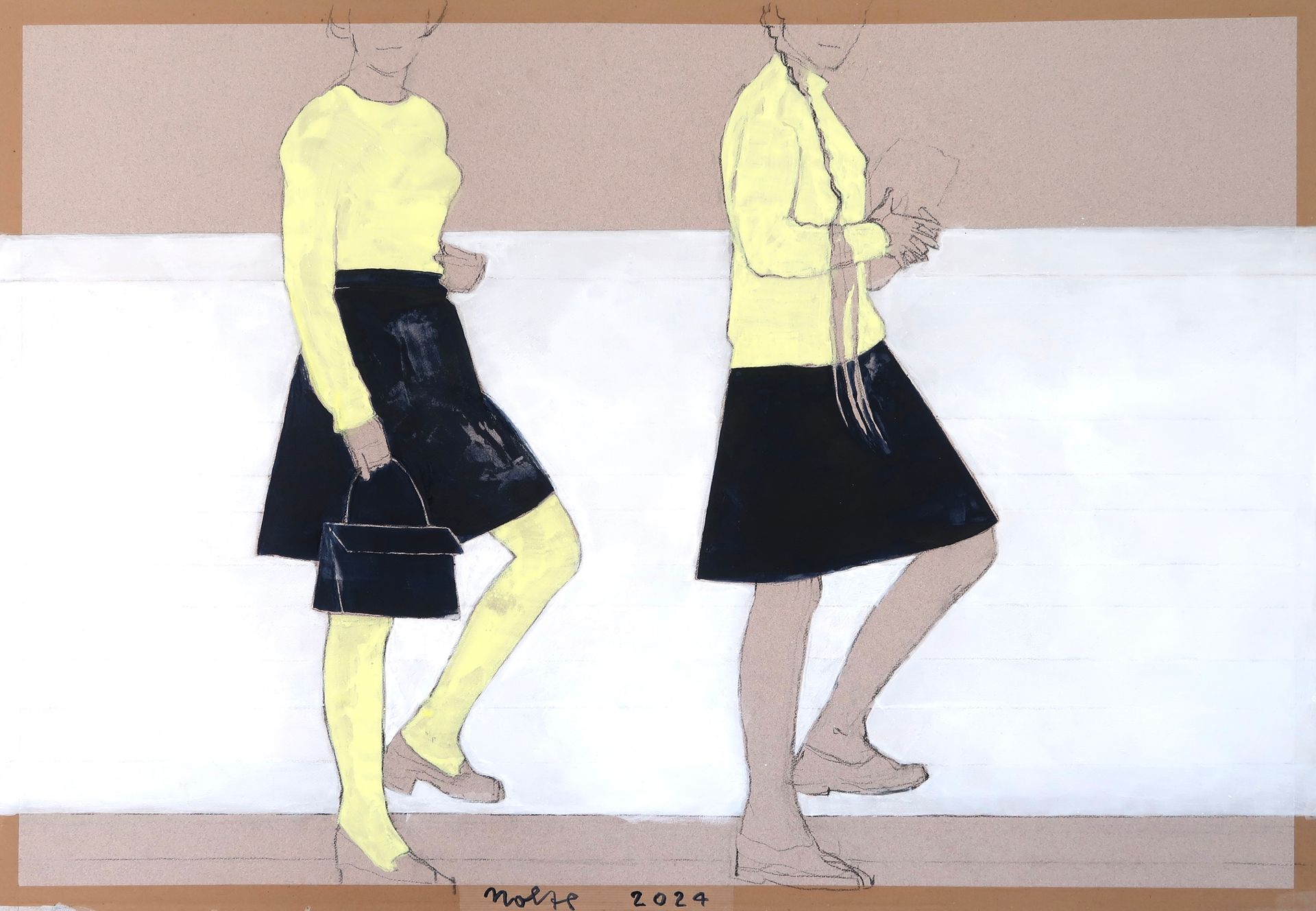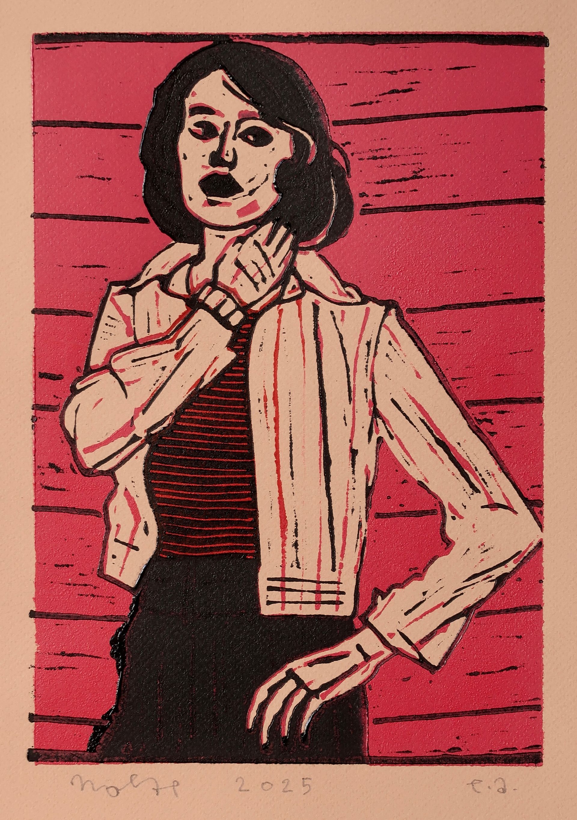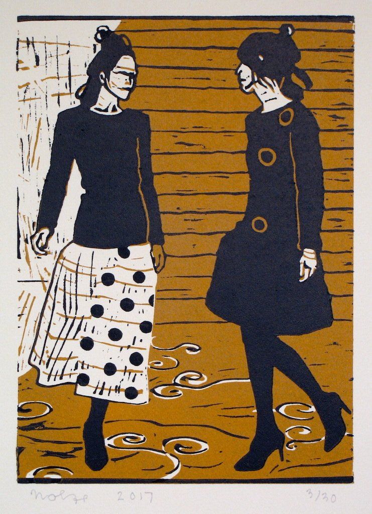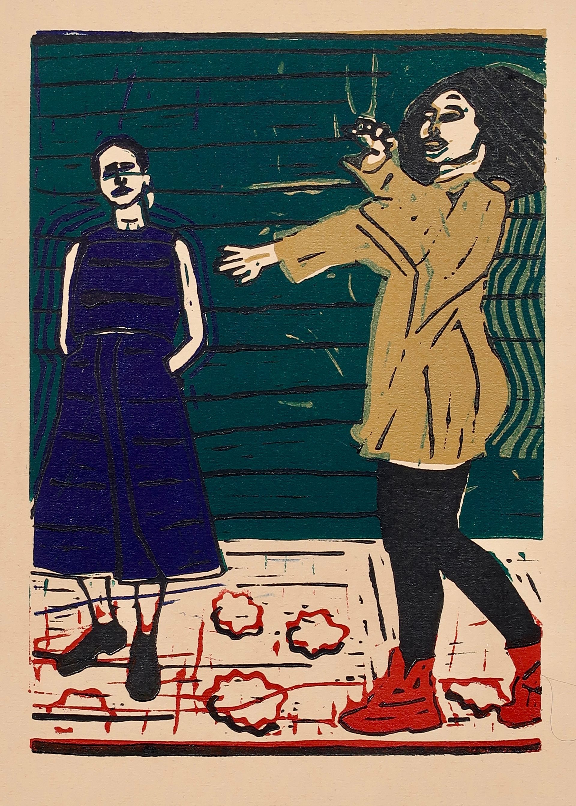 "Vooral de alsmaar toenemende betekenis van de vrouw in al haar verschijningsvormen in de kunst is voor Nolte een graadmeter van groeiende tolerantie. 'Andere mensen, andere gewoonten, andere kleur, andere gedachte. In mijn drie linosneden gaat het niet om de hoofdpersoon maar om de toeschouwers, om de mensen op straat. Niet een volk dat veroordeelt, maar de mens die daar tussen staat: de vrouw die ziet, luistert, ondergaat, beweegt, danst.'