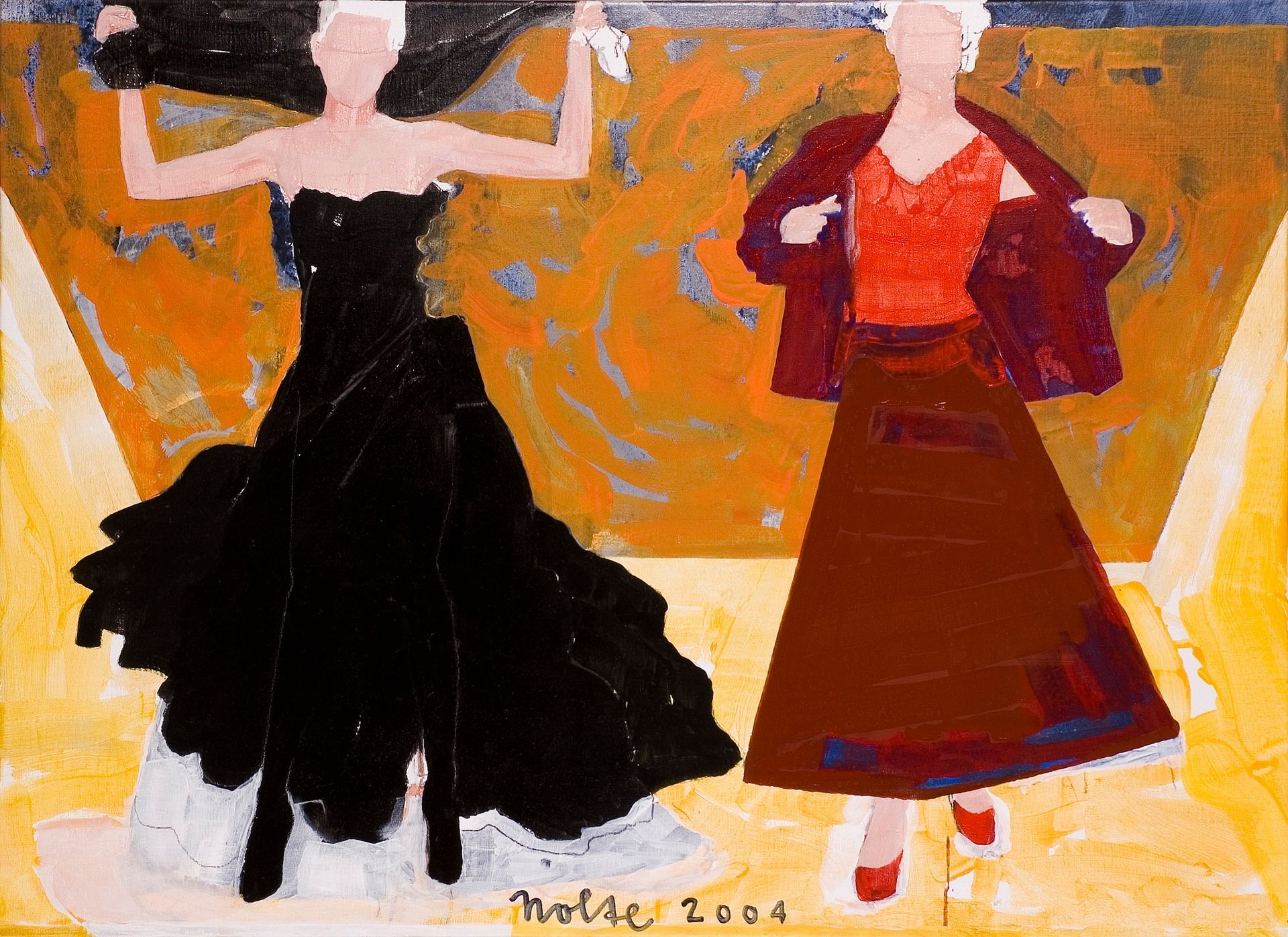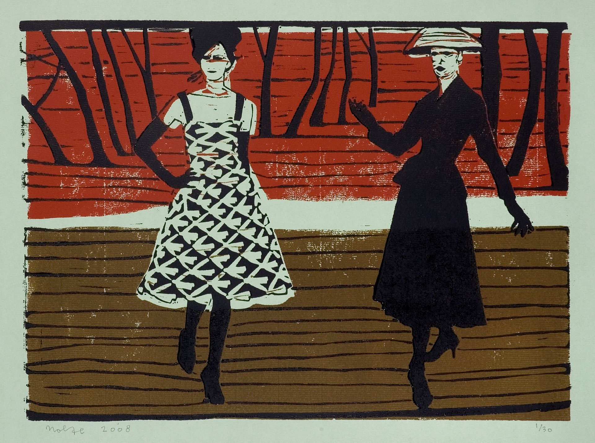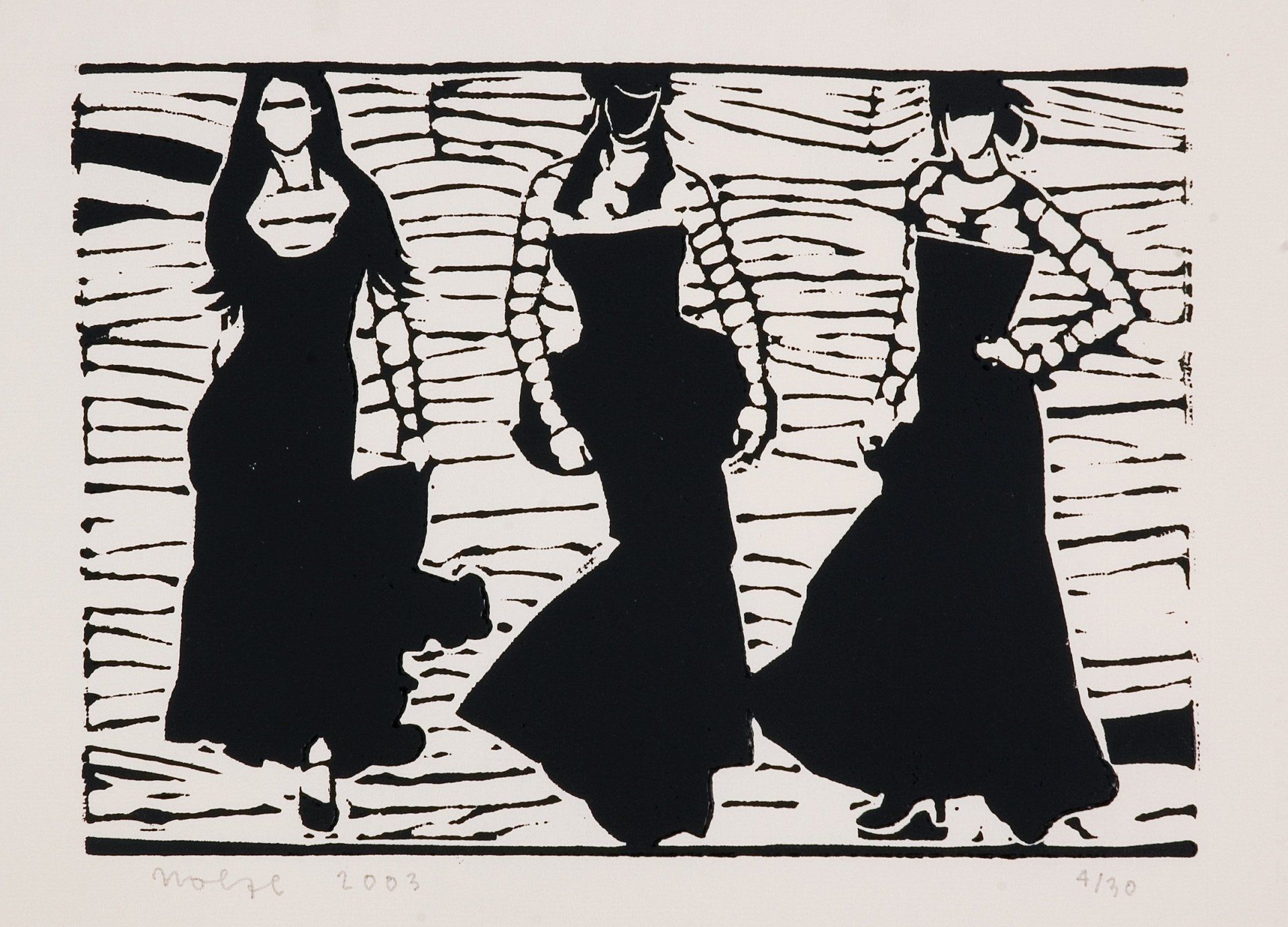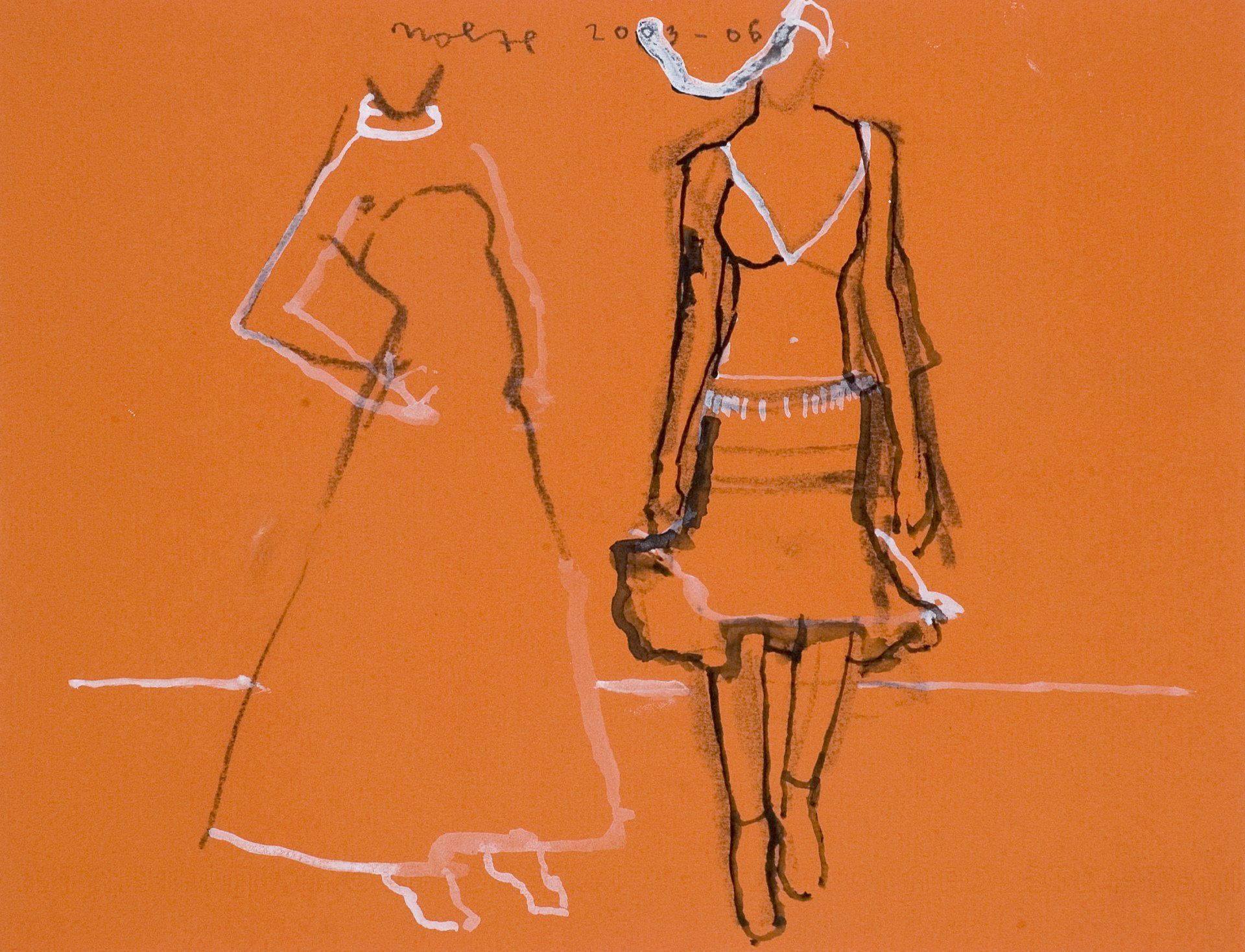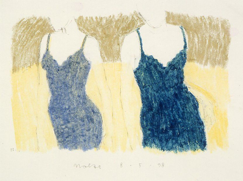 Vanaf begin jaren negentig maak ik schilderijen en linoleumsneden van vrouwenfiguren. De vrouwen staan in een summier aangegeven ruimte. Schilderijen zijn als collages gemaakt van uitgeknipte en beschilderde figuren van zijdewormpapier, vloeipapier of kunststofpapier. En getekend of geschilderd op papier en doek.