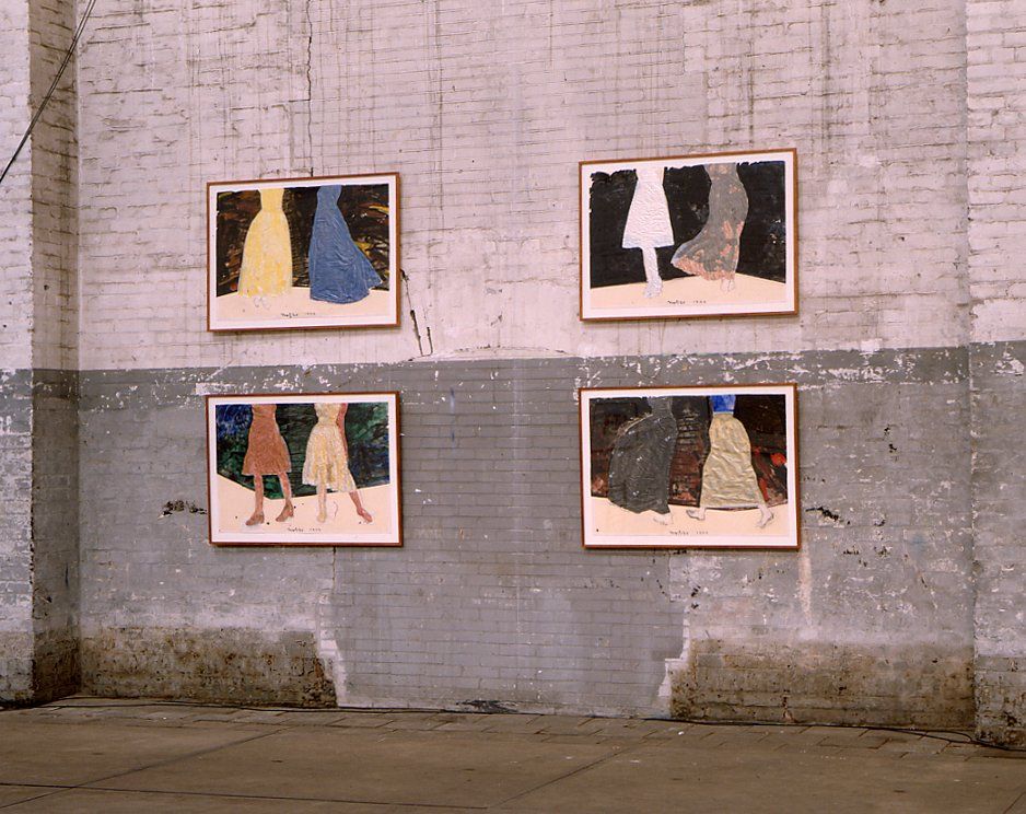 4 tekeningen/collages uit een serie van 8 - acryl, vloei- zijdeworm- en kunststofpapier, 220 x 340 cm. Organisatie Stichting Kunsttraject: Dick Jansen, Harry J. Kraaij, Maaike Sijbrandij, Joost Vermeulen.